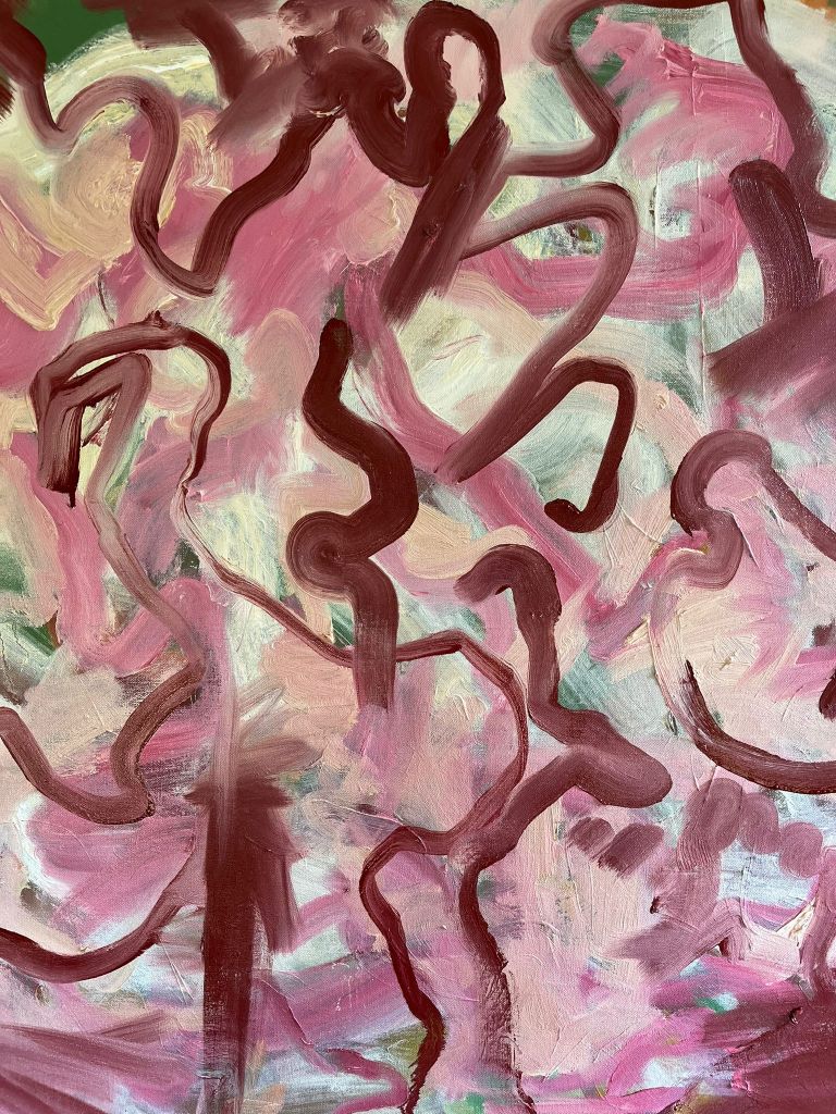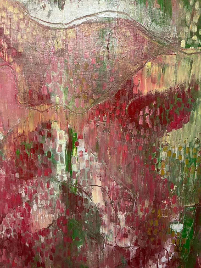 The palette is inspired by living surfaces: the glimmer of sea anemones, drifting seaweed, thick red river mud, slick algae, and fungi growing on rotting tree stumps. Colour allows me to observe and translate the energy and patterns I see in natural systems, guiding my exploratory studies and abstract compositions.